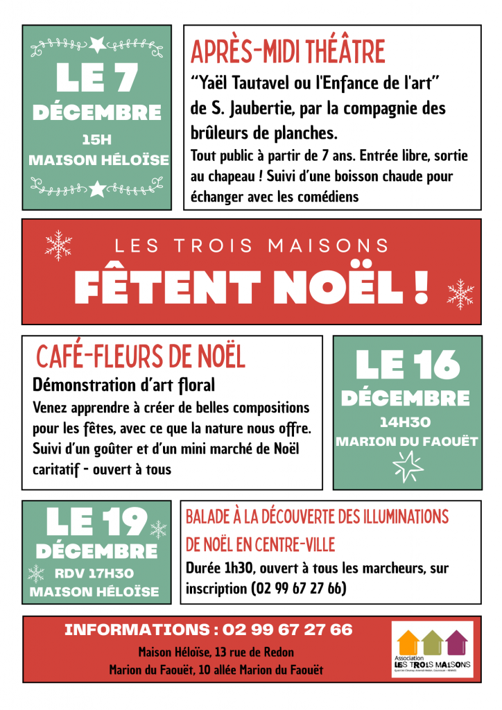 - échange et convivialité : mardis convivialité, cuisine, jardin partagé